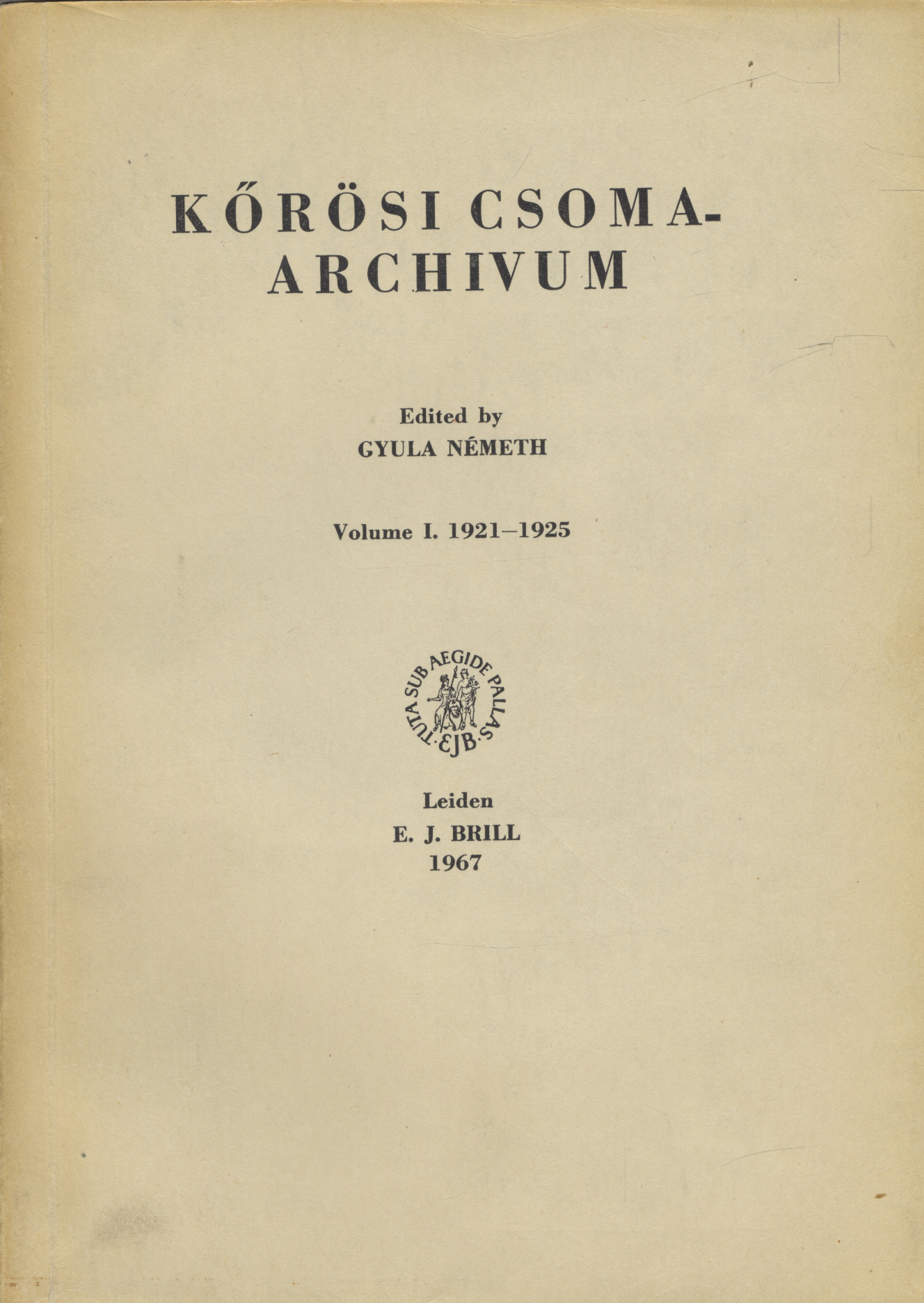 Körösi Csoma Archivum, Vol 1, ed. by Gyula Németh