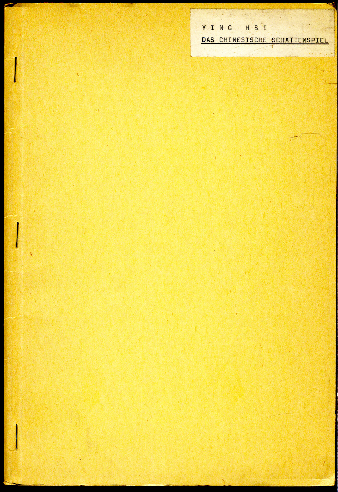 Ying Hsi: Das Chinesische Schattenspiel, von Max Bührmann